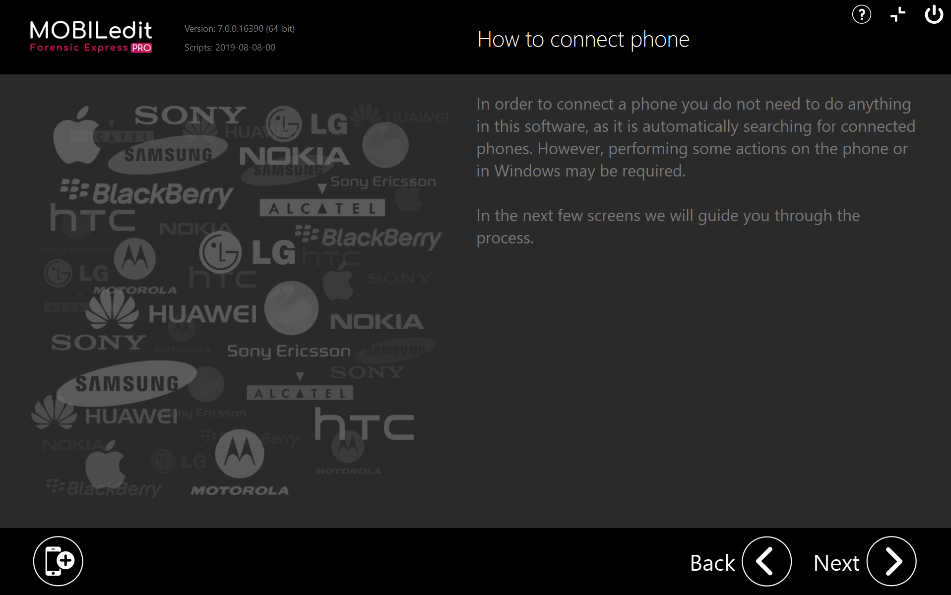 Es reicht nicht aus, das richtige Werkzeug zu haben, Sie brauchen auch das richtige Personal, um damit zu arbeiten. Je kürzer die Lernkurve, desto besser. Da wir Software für Millionen von Verbrauchern entwickelt haben, war es für uns eine willkommene Herausforderung, MOBILedit Forensic zum benutzerfreundlichsten Forensik-Tool auf dem Markt zu machen. Mit einer unkomplizierten Benutzeroberfläche ist jeder Schritt einfach und wird durch klare Anweisungen geführt. Es ist außerdem für Touchscreens optimiert und ermöglicht so eine einfache Verwendung im Feld.